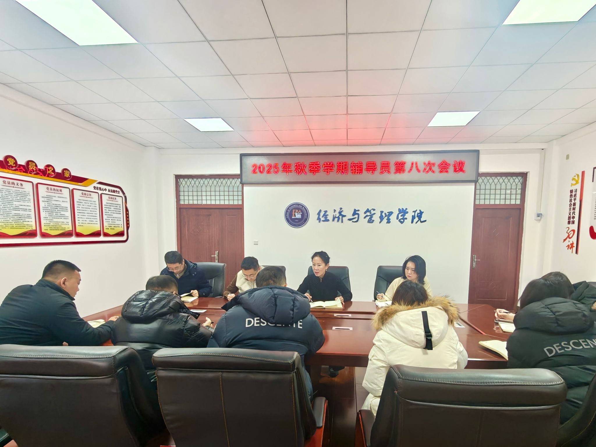 召开2025年秋季学期第八次辅导员工作会议。会议聚焦严肃考风考纪与诚信教育、常态化安全隐患排查、学生日常行为管理、备考关键期重点群体关爱、假期留校与返乡学生分类教育管理进行系统部署。学院分管学生工作党委副书记翟力主持会议,全体辅导员参加会议。
