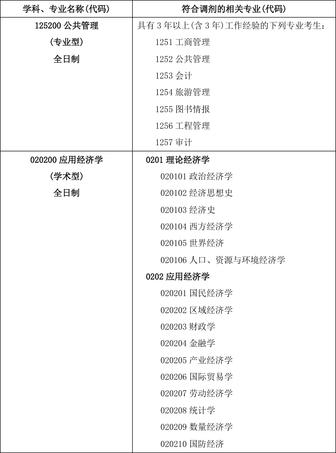 (三)调入专业与第一志愿报考专业相同或相近,初试科目与调入专业初试科目相同或相近。详见下表:
