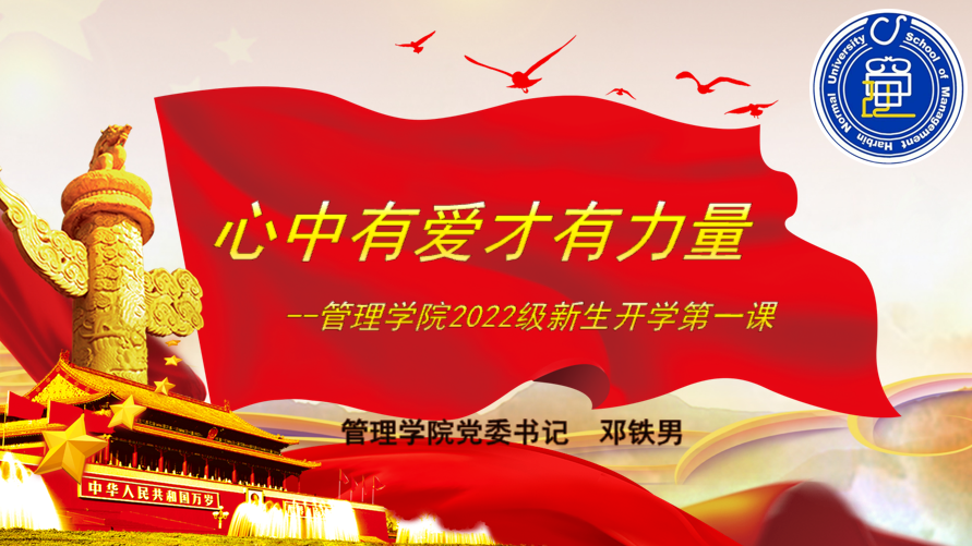 邓铁男以“心中有爱才有力量”为主题为2022级新生讲授“开学第一课”。在“如何爱党”“如何爱国”“如何爱校”三个层面引导同学们正确认识中国共产党带领中国人民进行革命和建设的光辉历程,以及领导中华民族从站起来、富起来到强起来的千秋伟业;深刻理解中华民族伟大复兴的中国梦,爱国要立足民族、面向世界,要把爱国与爱党、爱社会主义、爱人民高度统一,自觉维护祖国统一和民族团结,紧扣时代精神和民族精神,践行社会主义核心价值观;真正了解学校历史发展脉络和未来发展规划,弘扬以“行知精神”为代表的大学文化,秉承“敦品励学,弘毅致远”的校训精神,践行“博文厚德,惟新致用”的院训精神,珍惜时光,拼搏进取,在大学期间认真学习专业知识,提升专业能力、综合素质和核心竞争力,做德智体美劳全面发展的中国特色社会主义建设者和接班人,无论何时都心中有爱,眼里有光,行中有善,脚下有远方!
