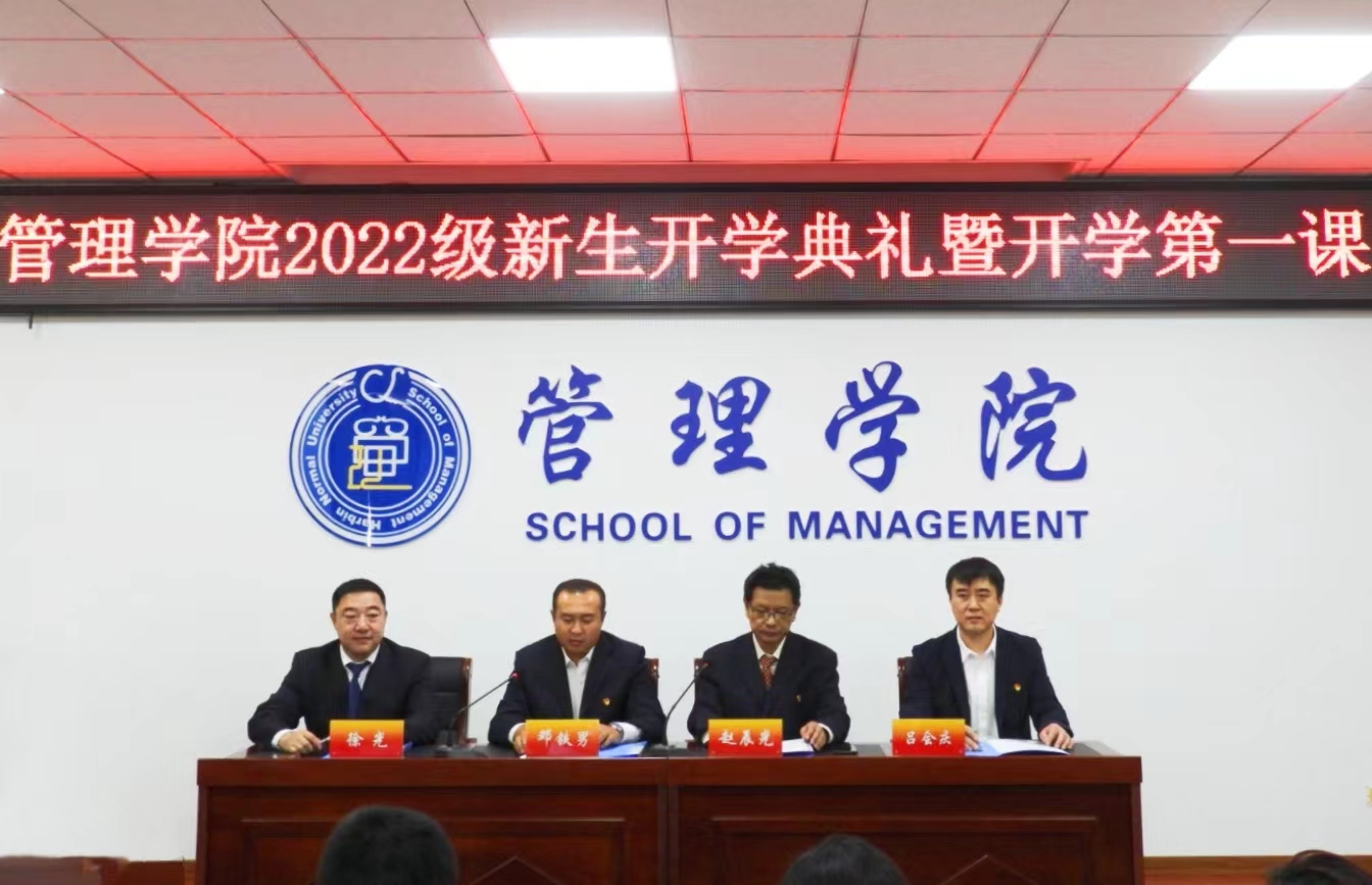 9月7日下午,管理学院采取线下典礼加线上直播方式举行2022级新生开学典礼暨开学第一课。学院党委书记邓铁男、院长赵辰光、副院长徐光、副处级辅导员吕会庆及全体辅导员线下参加典礼,学院2022级全体新生在线观看典礼。邓铁男主持开学典礼并讲授开学第一课。