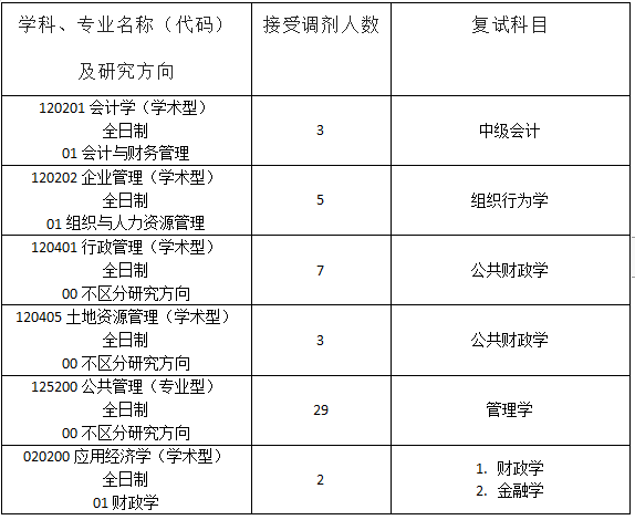 会计学(学术型)、企业管理(学术型)、行政管理(学术型)、土地资源管理(学术型)、应用经济学(学术型)、公共管理(专业型),与足球高清直播在线观看