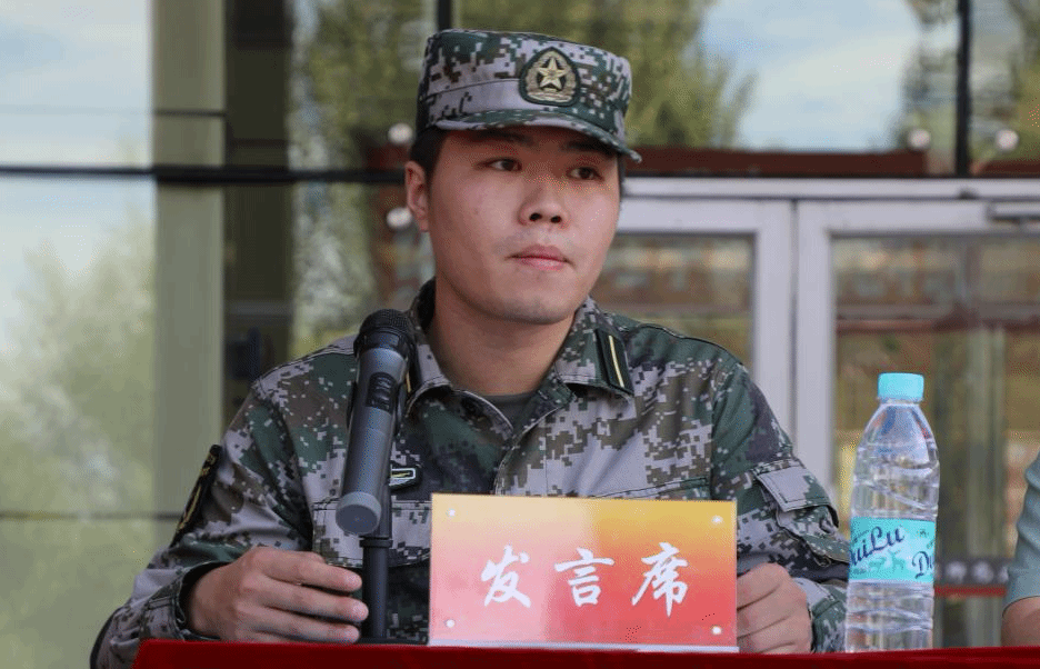 三营七连教官李明浩同志代表全体教官发言。李明浩同志强调了军训的意义,希望同学们在军训过程中能够不断战胜自己,超越自己,为自己的人生留下浓墨重彩的一笔,以优异的成绩接受学校的检阅。