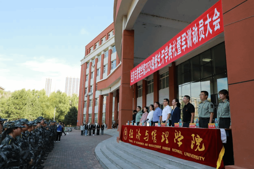 于哈尔滨师范大学江北校区崇师楼A区召开2024级新生开学典礼暨军训动员大会。足球高清直播