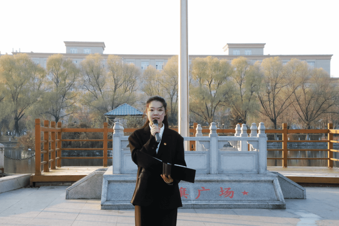 升国旗、奏唱国歌。国旗在晨曦中缓缓升起,国歌奏响。全体师生高唱国歌,声音洪亮激昂,每一句歌词都饱含深情,眼神中满是对祖国的热爱与崇敬。