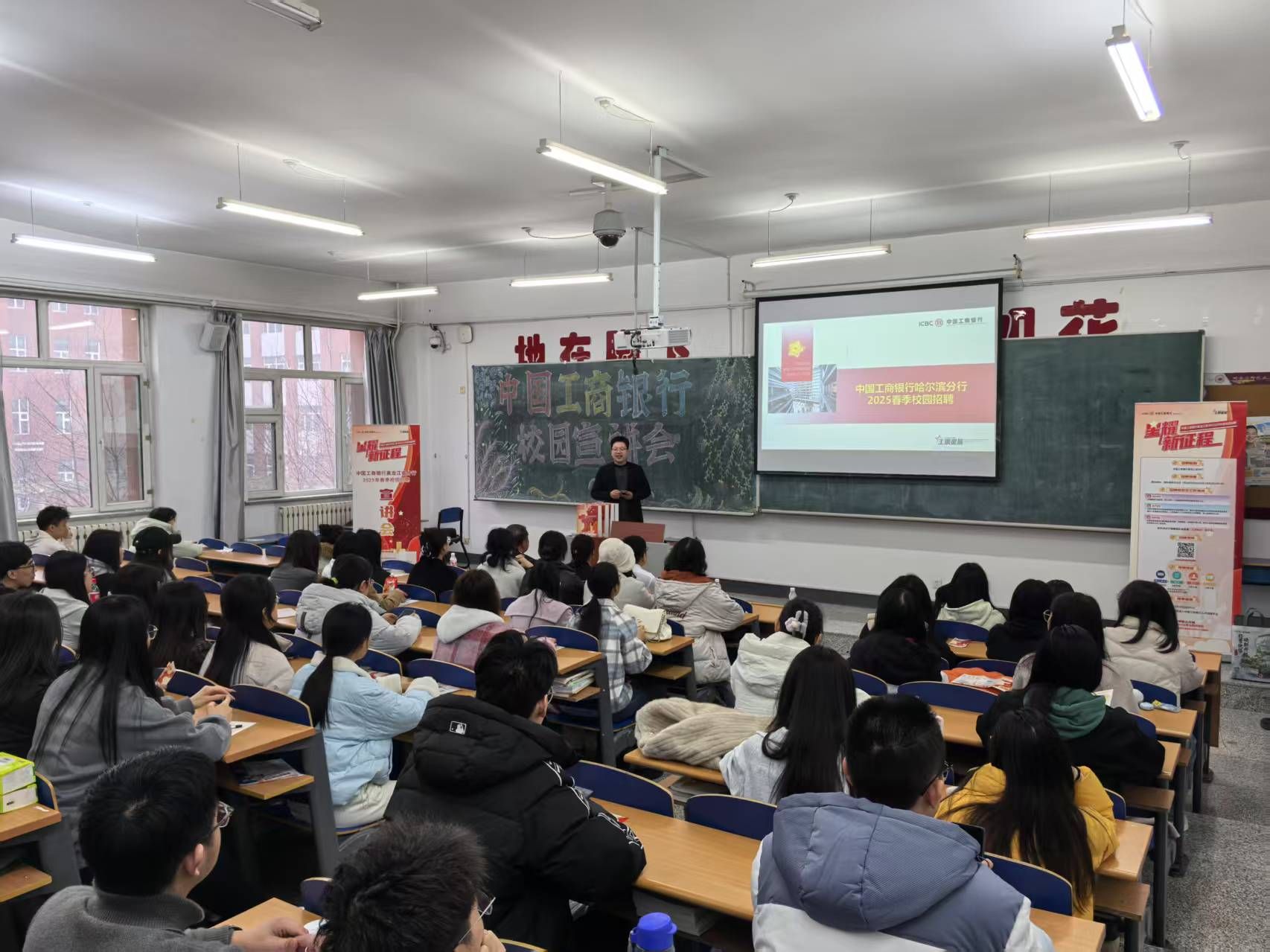为深化产教融合,助力金融人才培养,2025年3月26日,中国工商银行哈尔滨宏伟路支行联合哈尔滨市分行走进足球高清直播在线观看