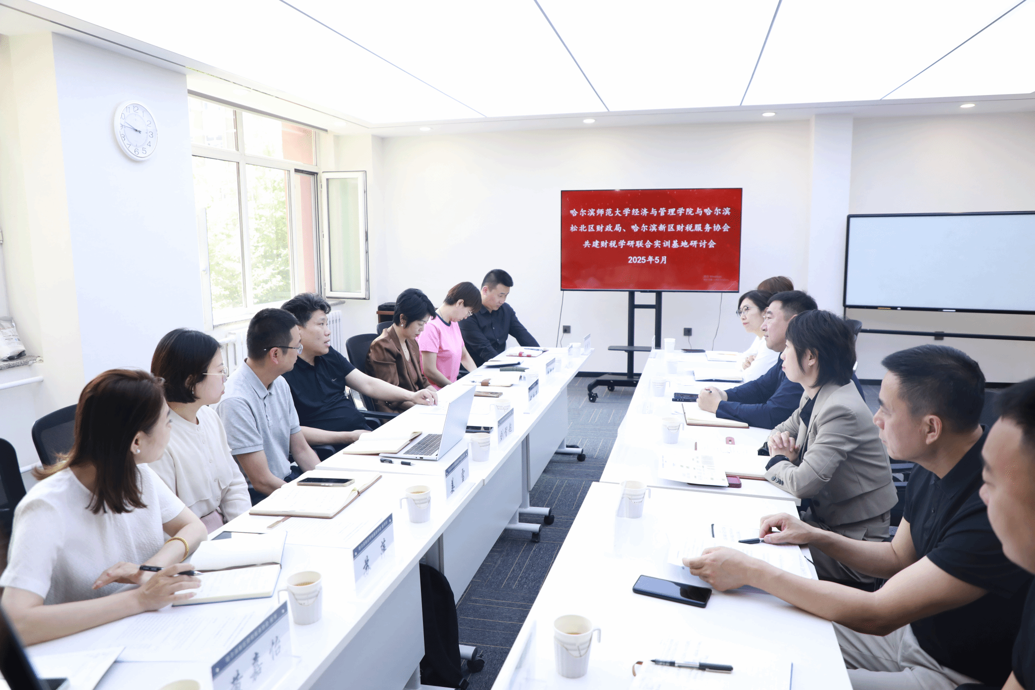 为深化“政产学研用”协同育人,推动人才培养与财政事业发展深度融合,5月29日,足球高清直播在线观看 和哈尔滨松北区财政局、哈尔滨新区财税服务协会在崇师楼A221召开学研联合实训基地研讨会。松北区财政局局长杨德海、财政事务服务中心主任颜莉娜、财税服务协会会长刘智超等一行,与足球高清直播 党委书记陈莹莹、院长徐光、副院长祁凯及部分师生代表共同参加了会议。