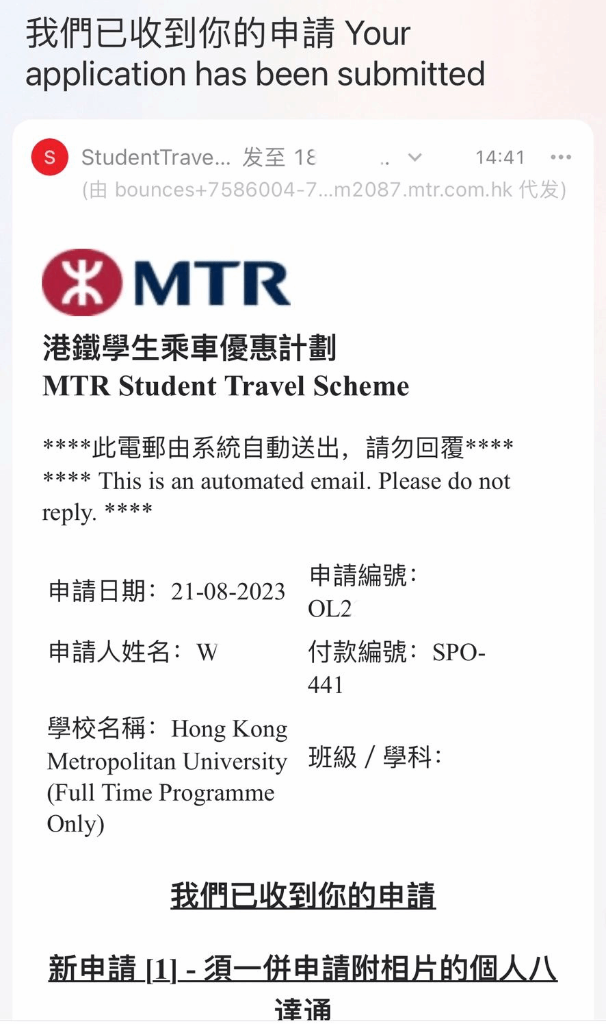 成功办理后会收到一封邮件(如图,4-6周后就能收到学生八达通。