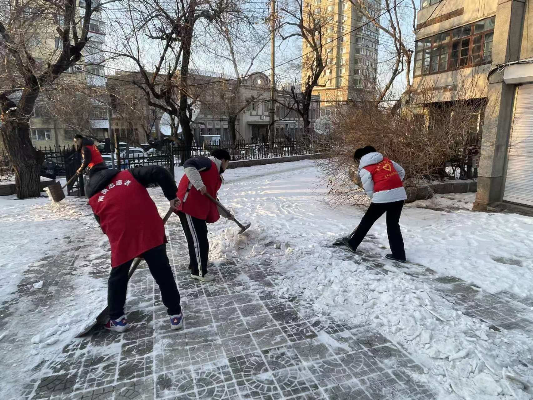 严寒的冬季,松花江社区的道路结冰积雪给居民出行带来了极大的不便和安全隐患。针对这一问题,研究生第二党支部“学研践行”志愿服务团迅速行动,组织清理社区道路冰雪。志愿者们不畏严寒,手持铁锹、扫帚,对社区内的主要道路、人行通道和车辆易滑路口进行了清扫,确保了居民安全出行,消除了安全隐患。