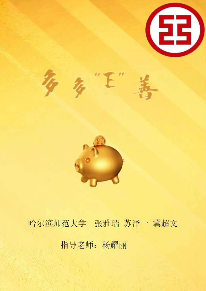 项目简介:多多“E”善是以中国工商银行为纽带,以大学生为主要目标人群,通过合理奖励机制和多人组队鼓励大学生攒钱的一个模块,本模块推出几种攒钱的方法供目标人群选择,还有可以详细记录大学生日常开销以及未来预算的便捷的功能。电子支付当今已广泛普及,在日常生活中,钱从我们的账户中溜走,何时溜走,溜走多少,都早已不似通过纸币交易时那样有明确的消费感受,也正是因为这样,往往同学们在消费的时候会难以掌握分寸,经常在月中就变成了月光族,而影响了剩下时间的正常的学习与生活。而通过该多多"E"善的储蓄模式和理财资源,用户可以更好地管理自己的财务状况,合理规划自己的资金流动,实现财务自由和个人理财目标。